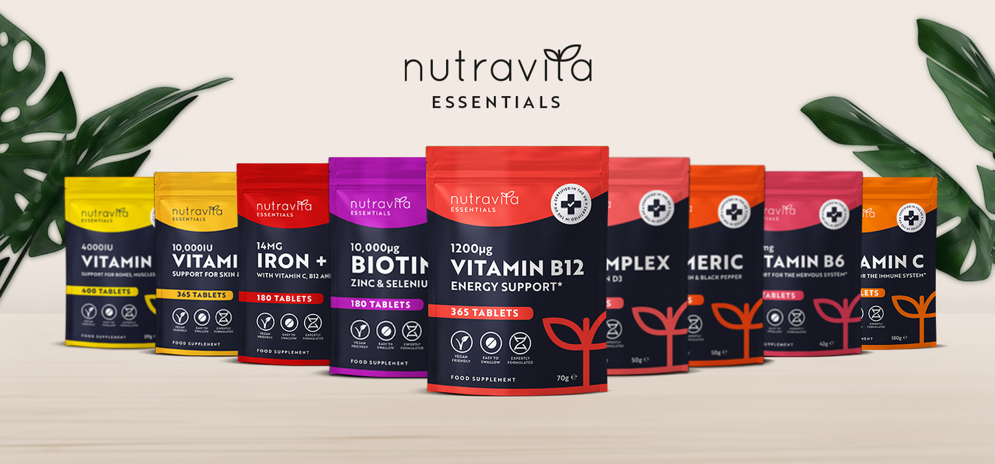 A key part of my role with Nutravita was to work on uplifting product ranges. The new Essentials range was new to the supplements market and needed to have branding that would attract consumers to supplements that packed all the benefits of the core range, but at a cheaper price point. Another benefit of the Essentials range was less packaging than the core range, which ensured the product reached the consumer via faster shipping through Amazon.